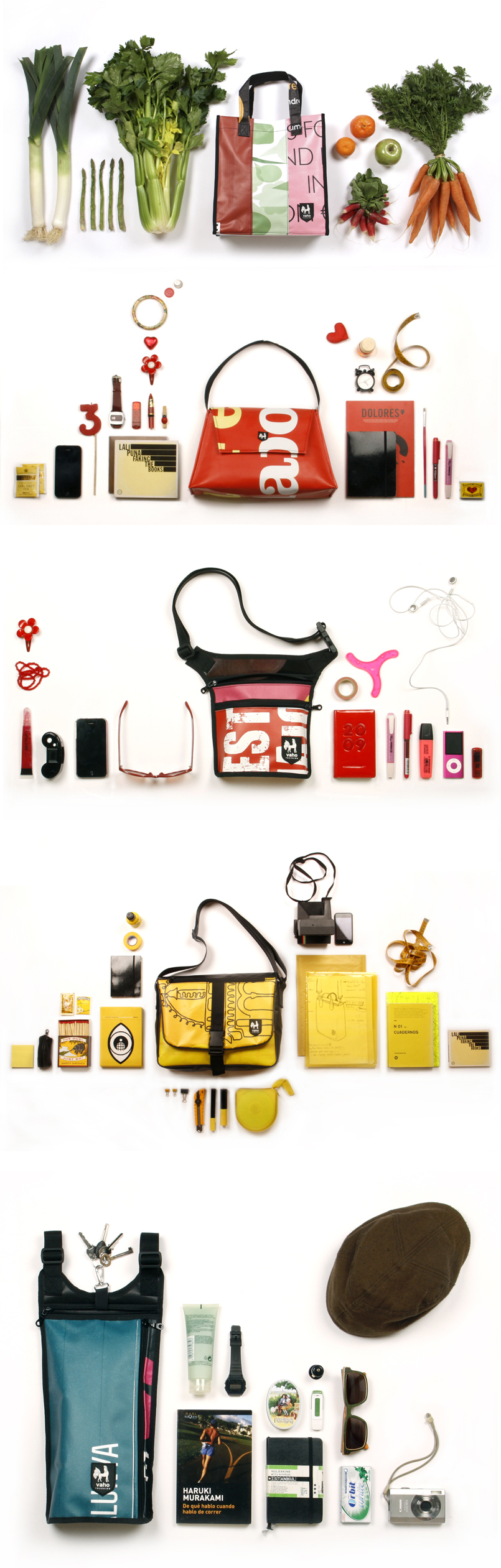 fotografía de bodegones para explicar la capacidad de los bolsos vaho