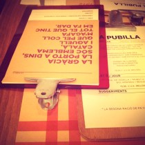 Exposición de la 8ed de los “Premis d´Arquitectura de les comarques de Girona” La exposición se formaliza en una alfombra, resultado de un entramado de 2 tejidos de colores diferentes y colocados en direcciones perpendiculares. Un color contiene la información