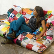 participación en la exposición colectiva Rehogar, que consiste en amueblar una vivienda a partir de objetos realizados con materiales reciclados. Nuestro proyecto es un patchwork de bolsas de plástico para hacer una alfombra o un puf gigante